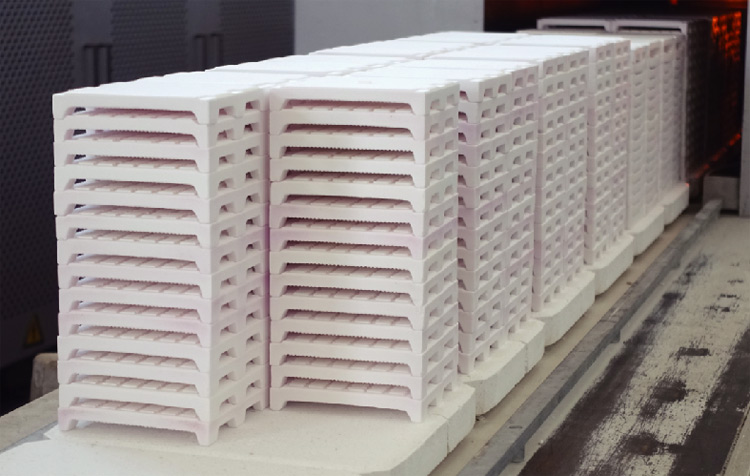 V型高技术陶瓷窑具对陶瓷产品烧结无污染,波纹状结构为陶瓷产品烧结专门设计,最小的接触面积为产品在整个高温烧结过程实现小的干扰,同时,非常好的光洁度和高精度的V形槽,保证陶瓷产品烧结的光洁度和形位尺寸精度。V形槽的设计,保证了陶瓷产品烧出合格的尺寸的一致性。我公司现有多种规格的V型槽板,也可以根据客户产品的大小均可设计定制不同的V槽板。